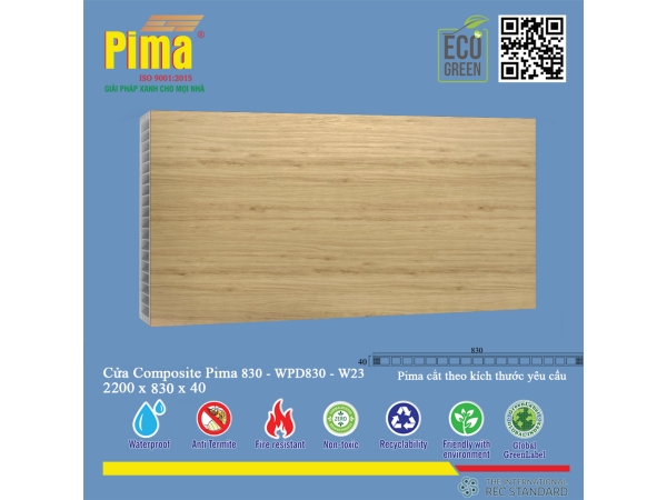 Công nghệ Composite PIMA đã cách mạng hóa ngành sản xuất cửa với những đặc tính ưu việt mà các vật liệu truyền thống khó lòng sánh được. Phôi cánh cửa PIMA 830*2200- W23 thừa hưởng trọn vẹn những ưu điểm nổi bật này. Đầu tiên và quan trọng nhất là khả năng chống nước tuyệt đối, loại bỏ hoàn toàn nỗi lo mối mọt, ẩm mốc, cong vênh hay co ngót dưới tác động của môi trường ẩm ướt – một vấn đề nan giải đối với cửa gỗ tự nhiên. Thứ hai, sản phẩm có độ bền cơ học cao, chịu lực tốt, chống va đập hiệu quả, đảm bảo tuổi thọ sử dụng lâu dài, giảm thiểu chi phí bảo trì và thay thế. Ngoài ra, Cửa Composite PIMA còn sở hữu khả năng cách âm, cách nhiệt tốt, góp phần tạo nên không gian yên tĩnh, mát mẻ và tiết kiệm năng lượng. Bên cạnh đó, vật liệu composite còn thân thiện với môi trường, không chứa các chất độc hại, đảm bảo an toàn cho sức khỏe người sử dụng. Đây không chỉ là một sản phẩm, mà là một khoản đầu tư thông minh cho giá trị bền vững và một cuộc sống chất lượng.