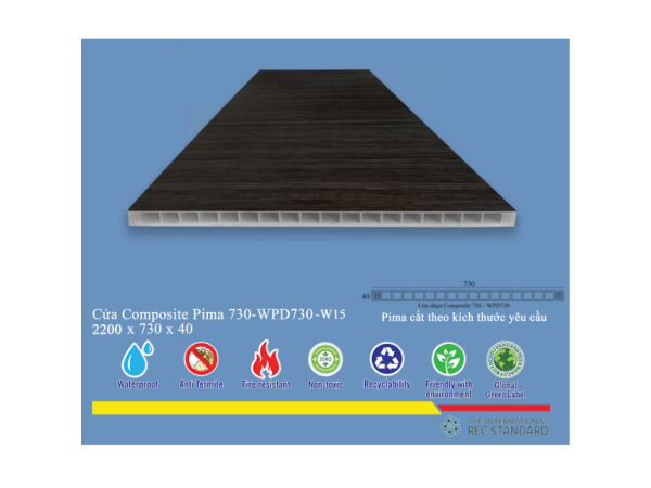 Phôi cửa Pima 73022 được sản xuất từ nguyên liệu Composite cao cấp, một loại vật liệu tổng hợp bao gồm nhựa PVC, bột gỗ, và các phụ gia khác. Quá trình sản xuất áp dụng công nghệ đùn ép tiên tiến, đảm bảo các hạt nhựa và bột gỗ được trộn đều, tạo nên một khối vật liệu đồng nhất, chắc chắn và có độ bền cao. Lớp phủ vân gỗ W15 được áp dụng bằng công nghệ ép nhiệt hoặc ép chân không, giúp lớp vân gỗ bám chắc vào bề mặt phôi, tạo nên hiệu ứng thẩm mỹ chân thực như gỗ tự nhiên, đồng thời tăng cường khả năng chống trầy xước và phai màu.