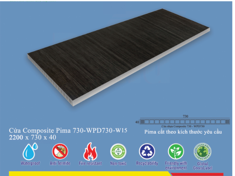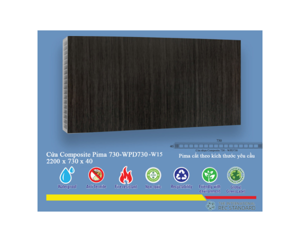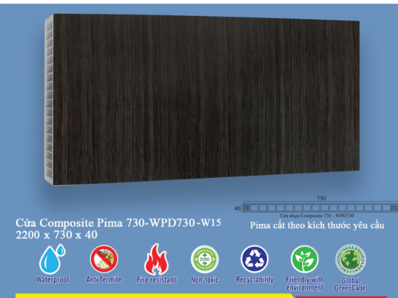 Phôi cửa Pima 73022 phủ vân gỗ W15 là một sản phẩm cao cấp thuộc dòng cửa Composite, mang đến sự kết hợp hoàn hảo giữa công nghệ sản xuất hiện đại và vẻ đẹp tự nhiên của gỗ. Với thiết kế tinh tế và chất lượng vượt trội, sản phẩm này nhanh chóng chiếm được cảm tình của người tiêu dùng, trở thành lựa chọn hàng đầu cho các công trình kiến trúc từ nhà ở dân dụng đến các dự án thương mại cao cấp. Sự ra đời của phôi cửa này đánh dấu một bước tiến quan trọng trong ngành vật liệu nội thất, mang đến những giải pháp cửa vừa bền đẹp, vừa an toàn và thân thiện với môi trường.