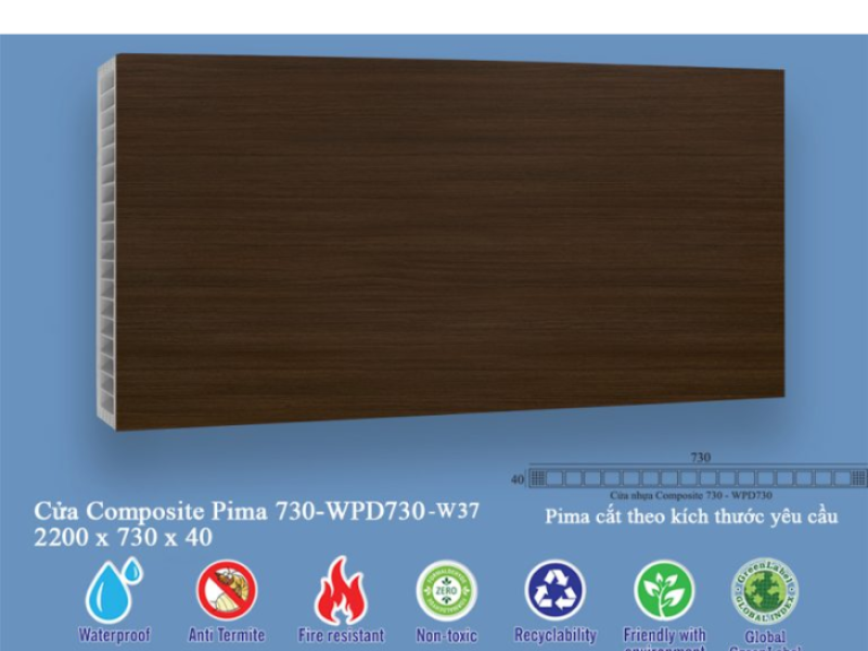 Vật liệu composite không chứa các hóa chất độc hại, an toàn cho người sử dụng và thân thiện với môi trường. Quá trình sản xuất cũng được kiểm soát chặt chẽ để giảm thiểu tác động tiêu cực đến môi trường. Do đó, bạn hoàn toàn có thể yên tâm khi lựa chọn phôi cửa này cho không gian sống của mình.