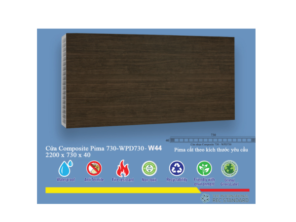 Vật liệu composite sử dụng trong Phôi Cửa Pima 73022 không chứa các hóa chất độc hại, đảm bảo an toàn cho sức khỏe người sử dụng. Quá trình sản xuất cũng hướng tới việc giảm thiểu tác động tiêu cực đến môi trường.