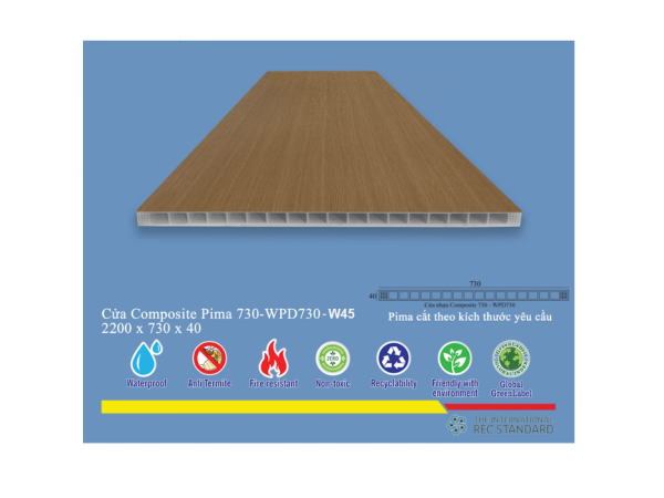 Phôi cửa Pima 73022 được chế tạo từ các nguyên liệu cao cấp, đảm bảo độ bền vượt trội, khả năng chống chịu tác động từ môi trường và thời gian. Điểm nhấn đặc biệt nằm ở lớp phủ vân gỗ W45, một công nghệ tiên tiến giúp tái tạo chân thực từng đường vân, thớ gỗ tự nhiên, mang lại cảm giác ấm áp và gần gũi. Lớp phủ này không chỉ tăng cường tính thẩm mỹ mà còn có khả năng chống trầy xước, chống ẩm mốc, dễ dàng vệ sinh, giúp bề mặt cửa luôn giữ được vẻ đẹp như mới.