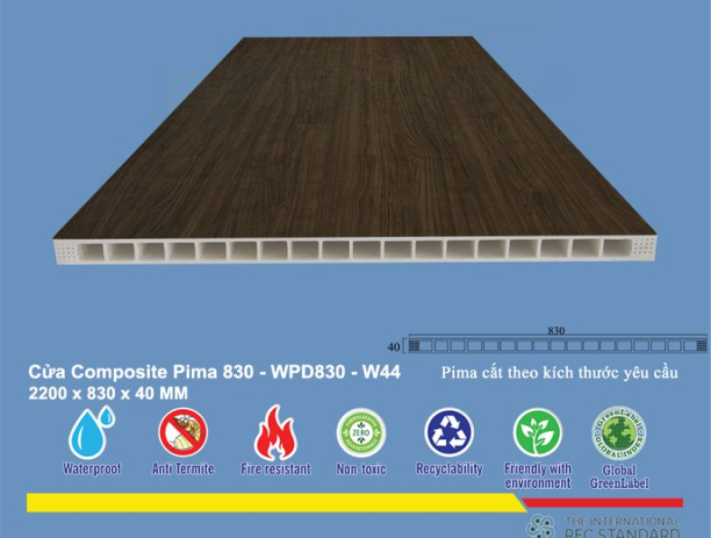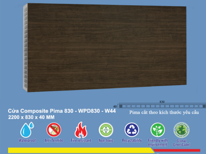 Khả năng chống ẩm, chống nước vượt trội của vật liệu nhựa composite làm cho Phôi cửa Pima 83022 trở thành lựa chọn hoàn hảo cho cửa nhà tắm và nhà vệ sinh. Nó hạn chế tối đa tình trạng ẩm mốc, cong vênh hay hư hỏng do tiếp xúc với nước thường xuyên, đảm bảo độ bền lâu dài cho sản phẩm.