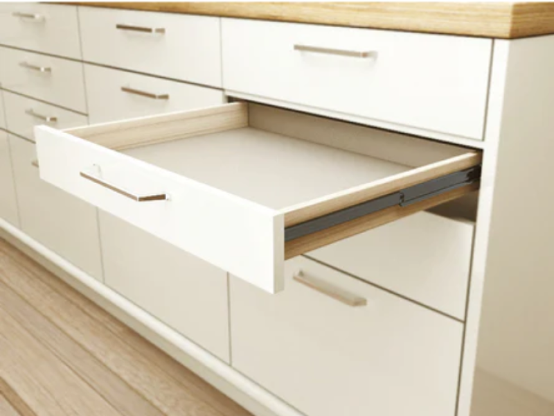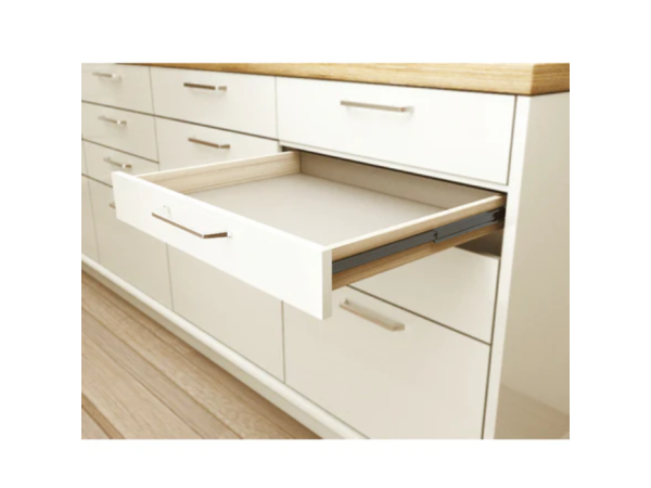 Tủ bếp là nơi thường xuyên phải chịu tải trọng lớn từ chén bát, xoong nồi và các vật dụng khác. Việc sử dụng Ray bi Hafele 494.02.064 cho các ngăn kéo tủ bếp giúp đảm bảo khả năng chịu lực, vận hành êm ái khi lấy đồ, đồng thời tăng tính thẩm mỹ cho không gian bếp hiện đại. Khả năng chịu tải 30kg là rất phù hợp cho các ngăn kéo chứa đồ nặng.