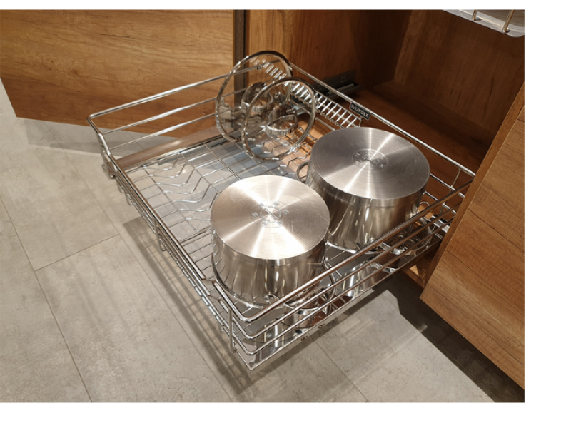 Với rổ xoong nồi này, việc tìm kiếm và lấy dụng cụ nấu nướng trở nên nhanh chóng và dễ dàng hơn bao giờ hết. Ray âm trượt mượt mà giúp bạn kéo rổ ra khỏi tủ chỉ bằng một lực đẩy nhẹ, mọi thứ đều trong tầm mắt và dễ dàng lấy ra. Điều này giúp tiết kiệm thời gian, công sức và mang lại trải nghiệm nấu nướng thoải mái, thư giãn hơn.