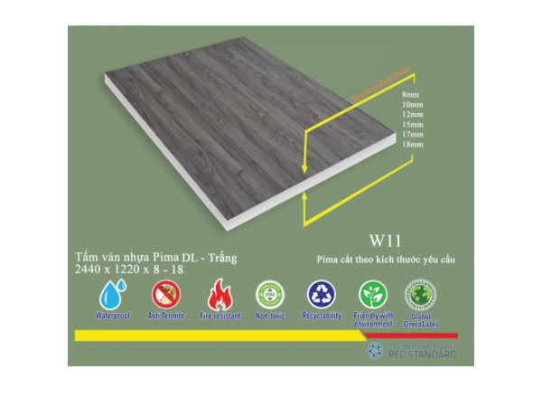 Tấm Pima DL 17mm phủ vân gỗ W11 - 2 mặt sở hữu những thông số kỹ thuật ấn tượng, làm nên giá trị sử dụng lâu dài và hiệu quả: