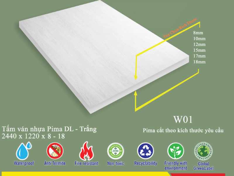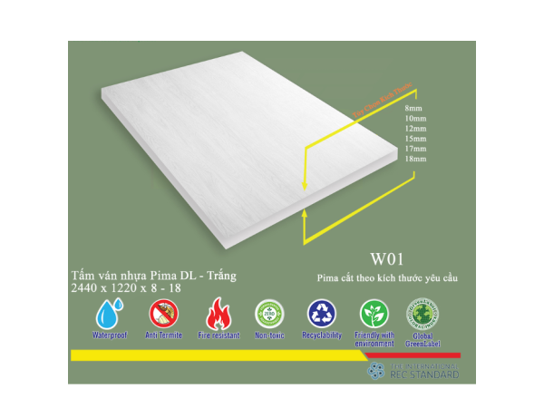 Tấm Pima DL 8mm phủ vân gỗ W01 - 1 mặt sở hữu những đặc điểm kỹ thuật vượt trội, đáp ứng nhu cầu khắt khe của thị trường: