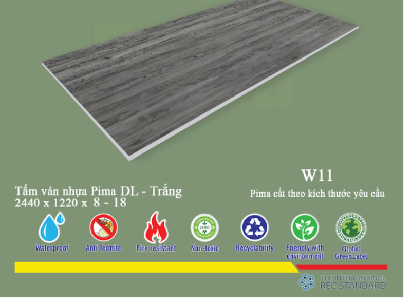 Lớp phủ vân gỗ W11 mang lại vẻ đẹp sàn gỗ tự nhiên, trong khi cấu trúc composite đảm bảo độ bền, chống trầy xước, chống ẩm và dễ dàng vệ sinh, đặc biệt phù hợp cho các không gian như phòng khách, phòng ngủ, văn phòng. Việc sử dụng TẤM VÁN NHỰA Pima DL cho sàn nhà là một lựa chọn thông minh, thay thế cho các loại sàn gỗ công nghiệp dễ bị hư hại bởi độ ẩm.