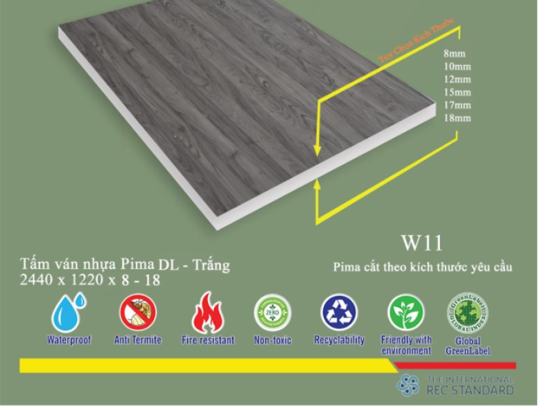 Tấm Pima DL 8mm phủ vân gỗ W11 - 1 mặt sở hữu nhiều đặc tính ưu việt, làm nên sự khác biệt so với các loại vật liệu truyền thống. Dưới đây là những điểm nhấn chính: