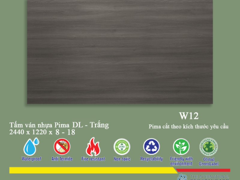Tấm Pima DL 8mm phủ vân gỗ W12 - 1 mặt