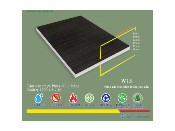 Chúng tôi cam kết cung cấp Tấm Pima DL 8mm chính hãng, đảm bảo chất lượng theo tiêu chuẩn quốc tế, với lớp phủ vân gỗ W15 sắc nét, bền màu.
