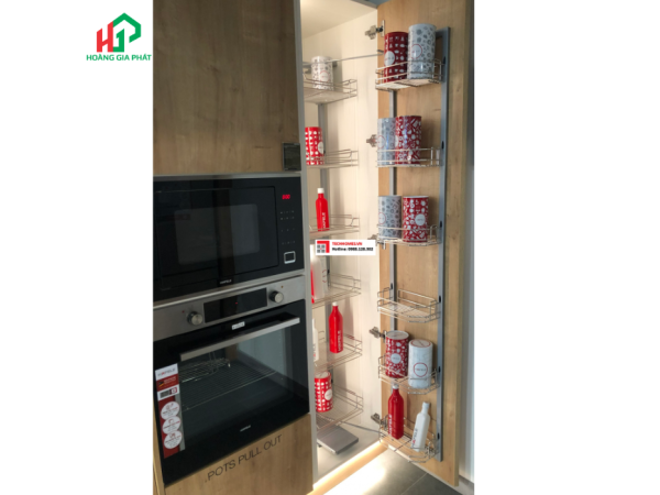 Điểm cộng lớn nhất của tủ đồ khô Hafele là khả năng tối ưu hóa không gian lưu trữ. Với 6 tầng khay, sản phẩm cho phép bạn phân loại và sắp xếp đa dạng các loại thực phẩm, từ chai lọ gia vị, các loại ngũ cốc, đến các loại bánh kẹo khô. Mỗi tầng khay đều được thiết kế khoa học, tận dụng tối đa chiều cao và chiều sâu của tủ, giúp bạn chứa được nhiều đồ hơn mà vẫn đảm bảo sự gọn gàng, ngăn nắp.
