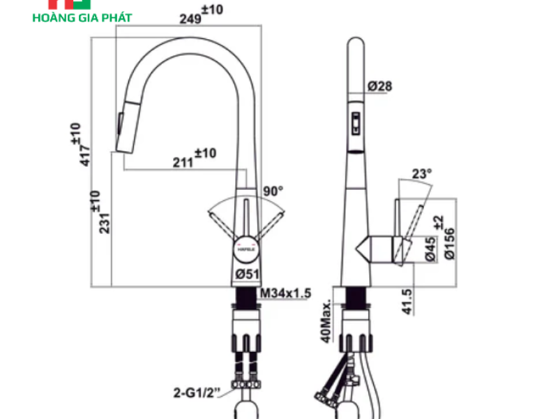 Vòi bếp Hafele Màu Đen 567.24.498 không chỉ thu hút bởi vẻ ngoài mà còn bởi những thông số kỹ thuật đáng nể, thể hiện sự tối ưu hóa trong từng chi tiết: