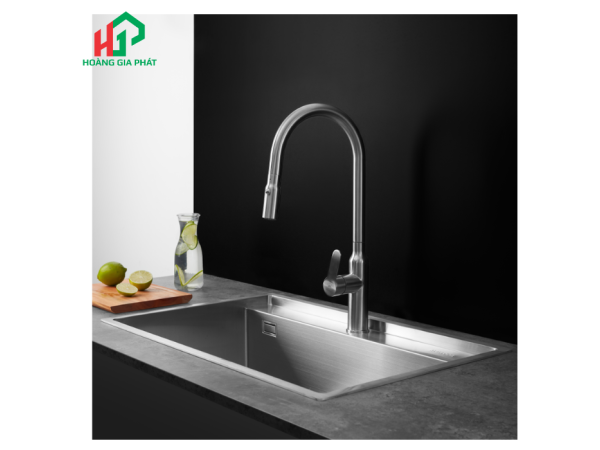 Tính năng dây rút là một điểm cộng lớn, mang lại sự tiện dụng vượt trội so với các loại vòi truyền thống. Dây rút với chiều dài lên đến 1 mét cho phép người dùng kéo dài vòi ra để lấy nước hoặc vệ sinh các khu vực xa, làm sạch mọi ngóc ngách của bồn rửa một cách dễ dàng. Sự linh hoạt này giúp vòi K046-SS có thể kết hợp hoàn hảo với cả bồn rửa 1 hộc hay 2 hộc, tối ưu hóa không gian và công năng sử dụng.